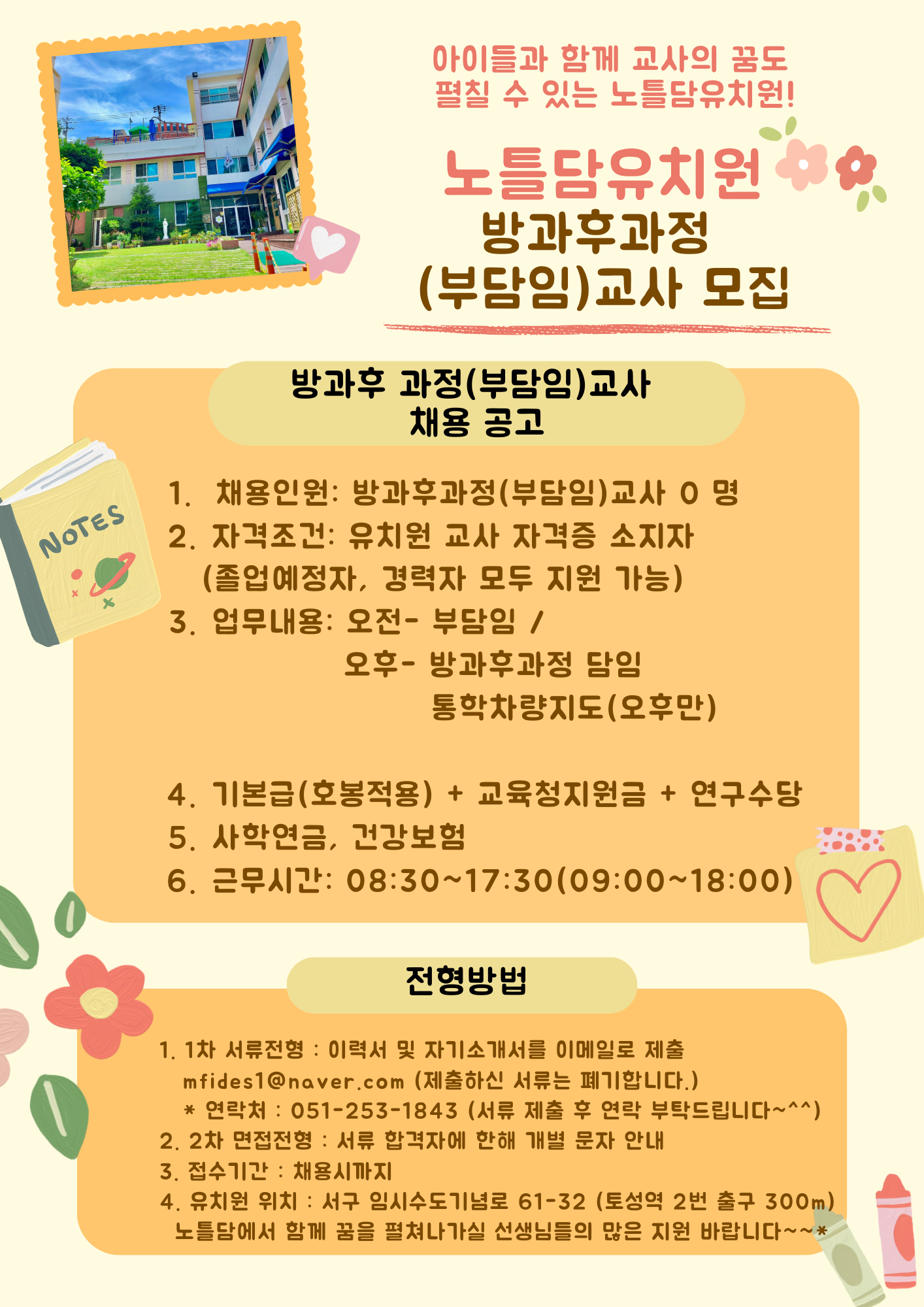 2026학년도 노틀담유치원 방과후과정(부담임)교사 채용공고